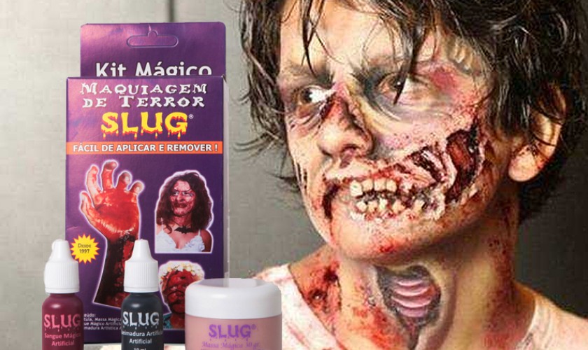 A maquiagem Slug proporciona que o ator/atriz movimente livremente o rosto sem perder as expressões. A massa craquela algum tempo depois de colocada pois como contém água esta evapora.